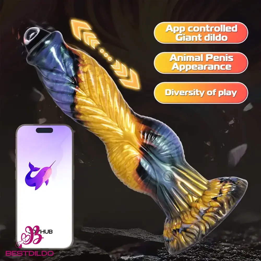 10.23in Soft Silicone Telescopic APP Control Monster Vibrating Knot Odd Dildo
