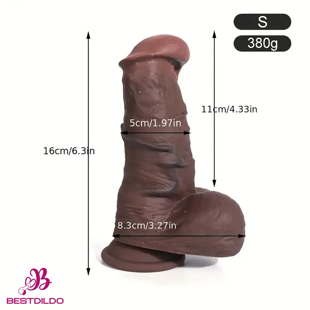 Specifications: Name: Real dildo Material: Silicone Length: S:12.2in/L:13.4in Insertable Length: S:9.05in/L:12.95in Diameter: S:2.6in/L:2.95in Color: Ebony Weight: / Package: 1 X