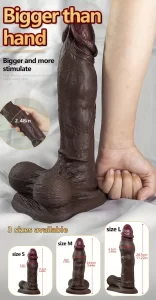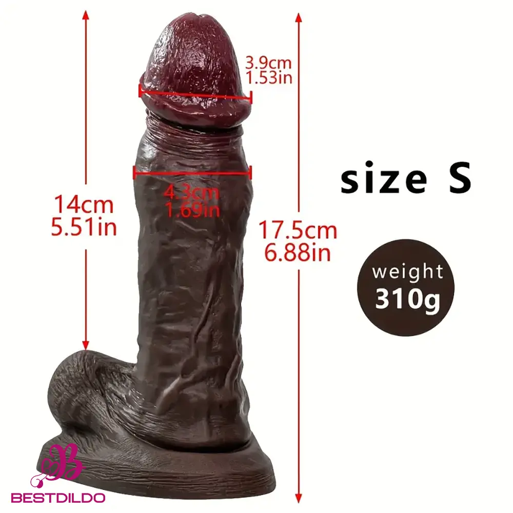 Specifications: Name: Real dildo Material: Silicone Length: S:12.2in/L:13.4in Insertable Length: S:9.05in/L:12.95in Diameter: S:2.6in/L:2.95in Color: Ebony Weight: / Package: 1 X
