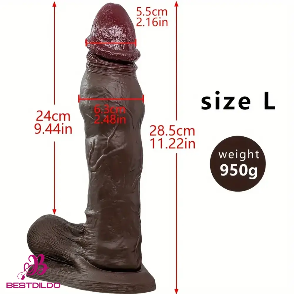 12.2in 13.4in Real Looking Silicone Big Long Flexible Ebony Sex Intimate Dildo