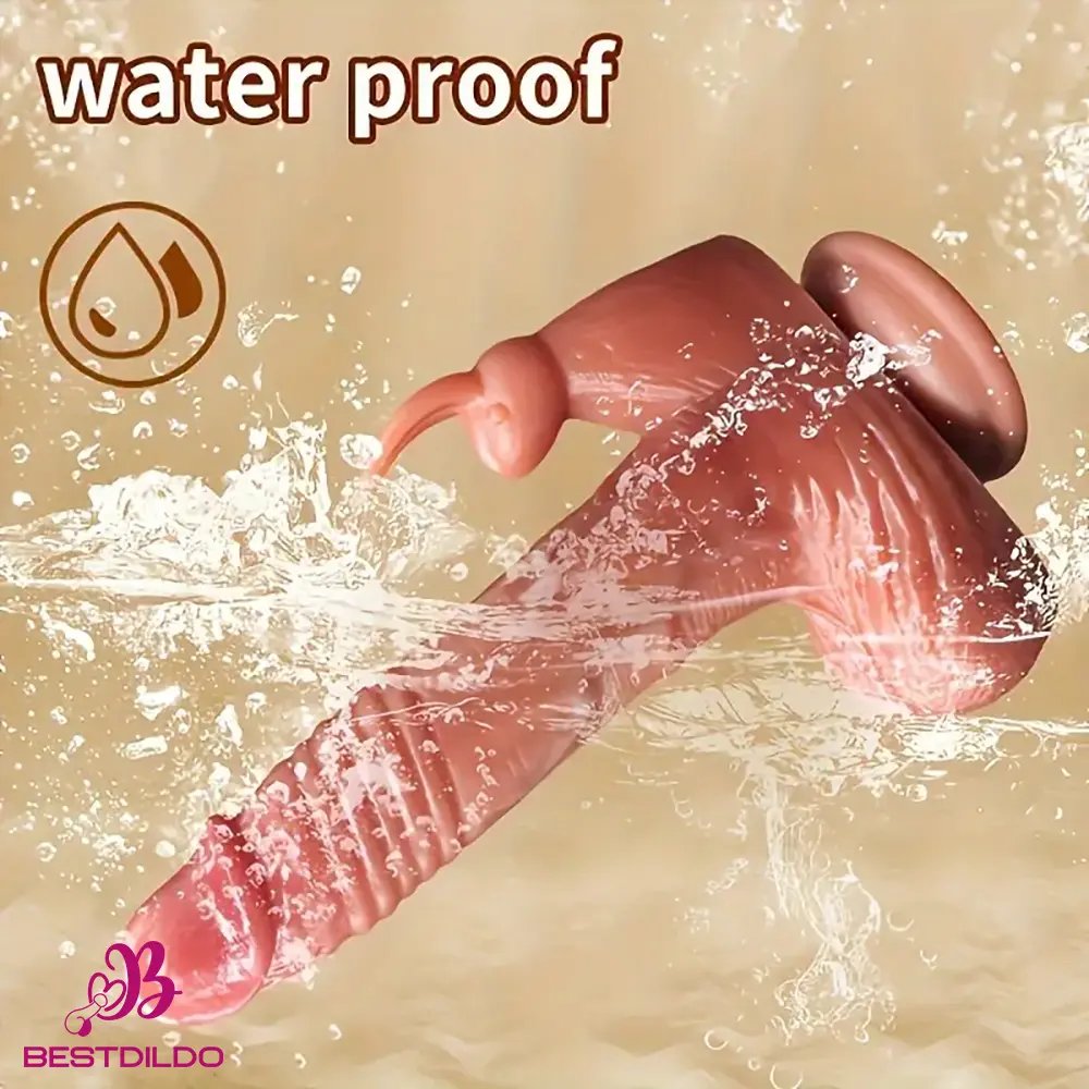 9.05in Rabbit Thrusting Tapping Heating Vibrating Silicone Penis Auto Dildo