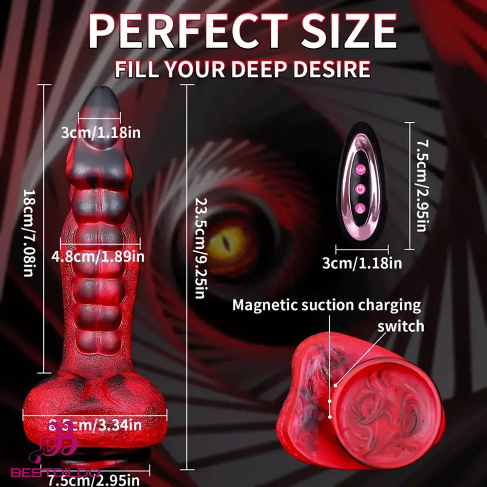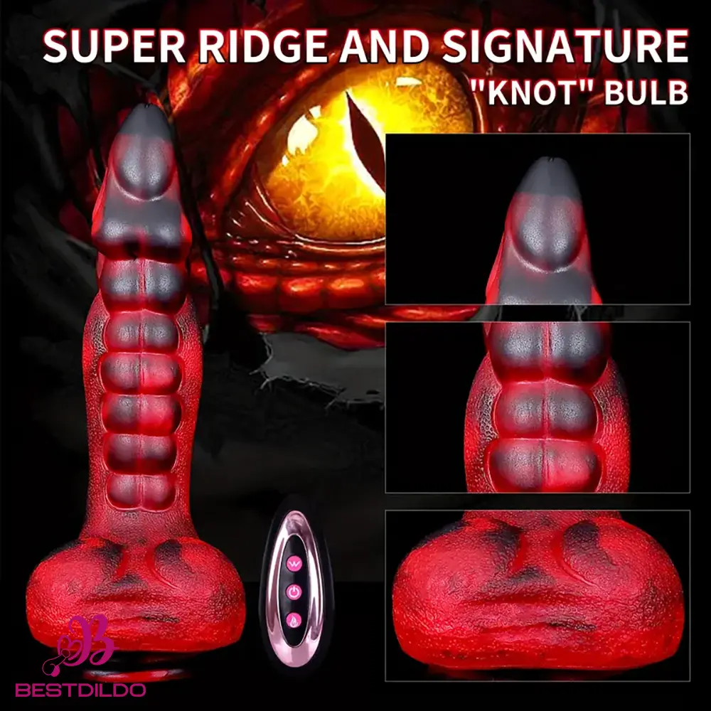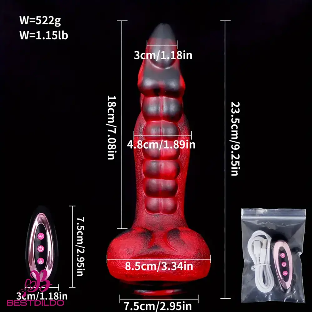 9.25in Retractable Heating Remote Control Vibrating Silicone Creature Dildo
